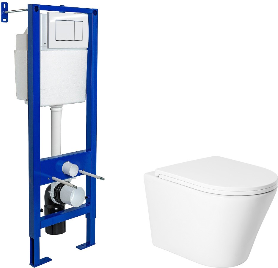 Унитаз подвесной с инсталляцией Saniteco KW-9005W + Berges АТОМ 410 040333 (с кнопкой)