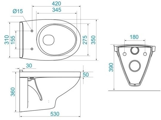 - Безободковый унитаз: нет