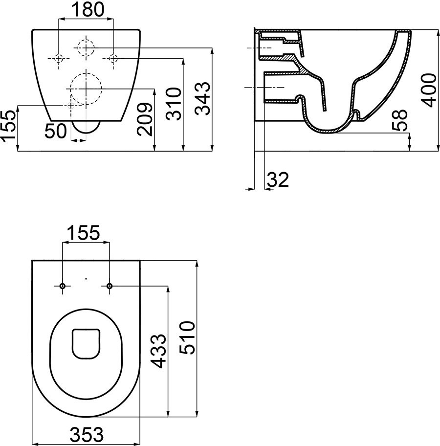 Тип унитаза:подвеснойШирина - 35,3 см.