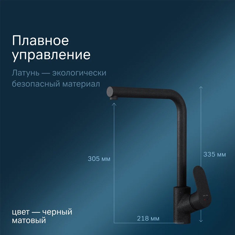 - Поворотный излив длиной 218 мм обеспечивает удобство при мытье посуды и наполнении кастрюль.
