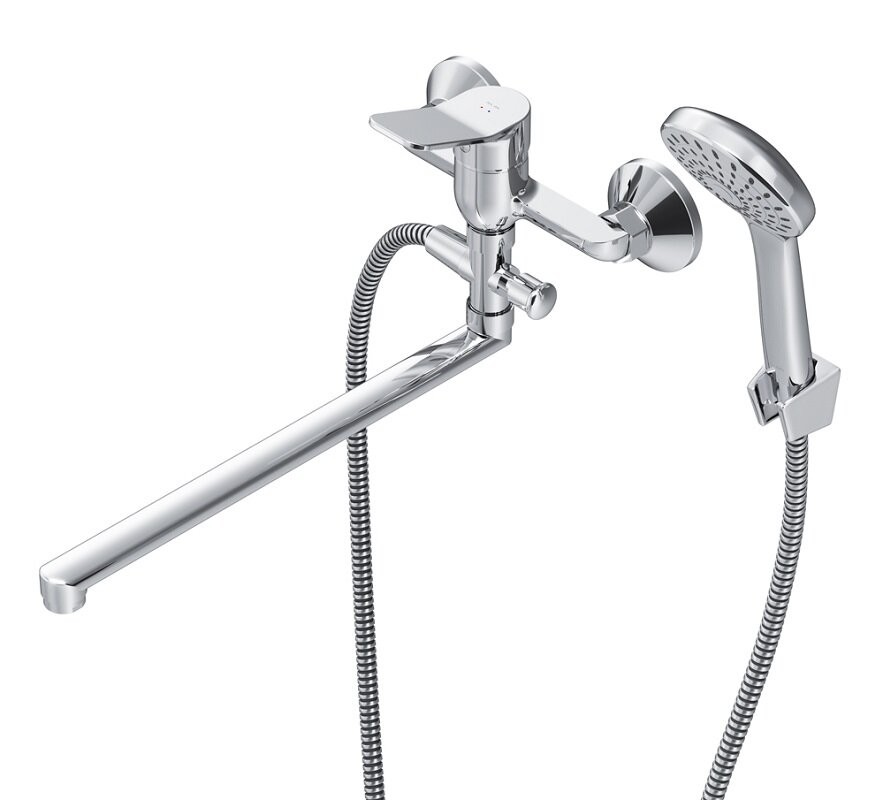 Стильное универсальное решение для ванной комнаты — качественный смеситель для ванны и душа с длинным поворотным изливом с душевым набором.Универсальный длинный излив позволяет использовать смеситель как для ванны, так и для рядом стоящей раковины. Функциональный держатель для ручного душа на два положения добавит удобства использования.Душевой шланг длиной 150 см позволит наслаждаться душем даже высокому человеку. Максимум функций за разумную плату в одном изделии. Ультрамодный дизайн ручки придает смесителю дополнительную динамику и дарит непревзойденную легкость управления. Вы почувствуете это с первого прикосновения.Точная инженерия для Вашего комфорта: благодаря обширной зоне движения ручки управлять температурой воды стало еще проще.