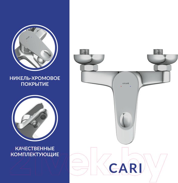 Смеситель для ванны и душевой гарнитур Cari — это технологичное и современное решение для обустройства ванной комнаты. Плавные мягкие линии и долговечное сияющее покрытие делают комплект украшением пространства. Смеситель Cari оснащен керамическим картриджем, рассчитанным на 500 тысяч циклов открывания и закрывания. Легким нажатием на рычаг происходит точное смешивание воды даже при плохом напоре. Цельнолитой корпус из латуни с высоким содержанием меди (более 57%) устойчив к коррозии, не боится перепадов воды и защищен от трещин. Первозданный блеск обеспечивает никель-хромовое покрытие Super Shine, прошедшее тестирование в течение 200 часов в нейтрально-солевой среде. Душевая лейка с силиконовыми форсунками легко чистится от известкового налета посредством прикосновения. Шланг комфортной длины в 1.5 метра внутри дополнен шлангом из нетоксичного безопасного каучука.