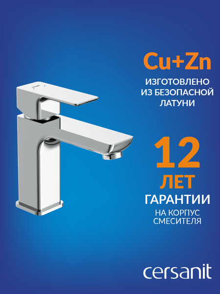 Смеситель для умывальника в геометричном дизайне из долговечной и безопасной латуни с добавлением 57% меди. Цельнолитой корпус выдерживает перепады давления в трубопроводе, а медь надежно защищает от коррозии и бактерий. Никель-хромовое покрытие Super Shine не боится жесткой воды и устойчиво к бытовой химии. Какой смеситель, если не Geo, выдержит 200 часов в нейтральной солевой среде? Сердце смесителя — долговечный керамический картридж, рассчитанный на 500 тыс. циклов использования. Эко-аэратор Neoperl пропускает около 6 литров воды минуту, что позволяет экономить до 50% ресурса. В комплекте подводка под смеситель с российским стандартом подключения, донный клапаном клик-клак, его не рекомендуют устанавливать на раковины без переливного отверстия. Смеситель Geo сочетается с раковинами коллекций: Como, Erica, Moduo Slim, Calla, Moduo, Carina, Colour, Crea.