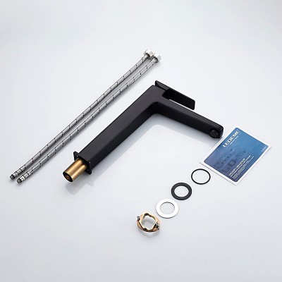 Смеситель для умывальника Ledeme L1178B черный, монтаж: на раковину, материал: латунь, тип управления: однорычажный, высота излива: 25.1 см, с аэратором