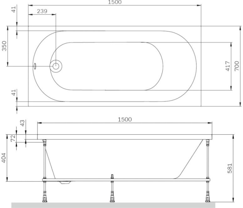 - Размер ванны (Д.;Ш.;В.;Г.) - 150x70x40,4 см