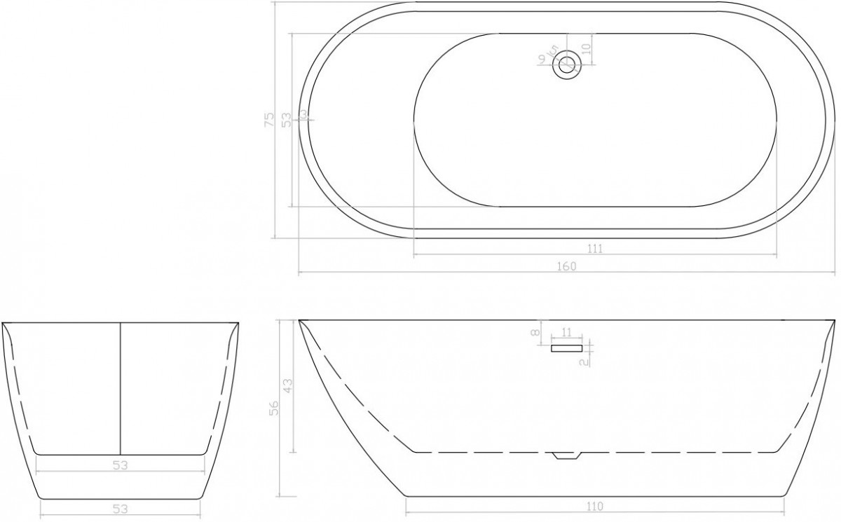 - Размер ванны (Д.;Ш.;В.;Г.) - 160x75x56 см