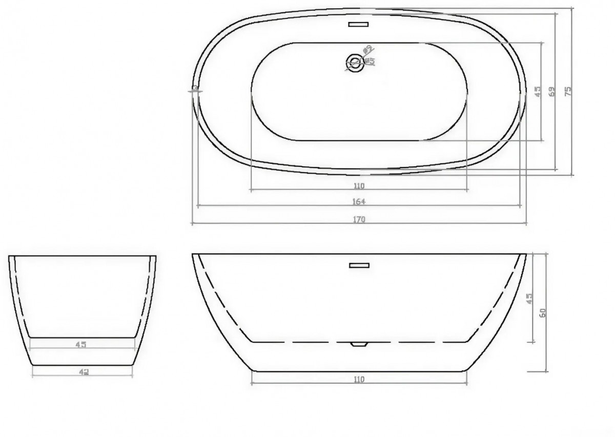 - Размер ванны (Д.;Ш.;В.;Г, см.) - 170x75x60x45