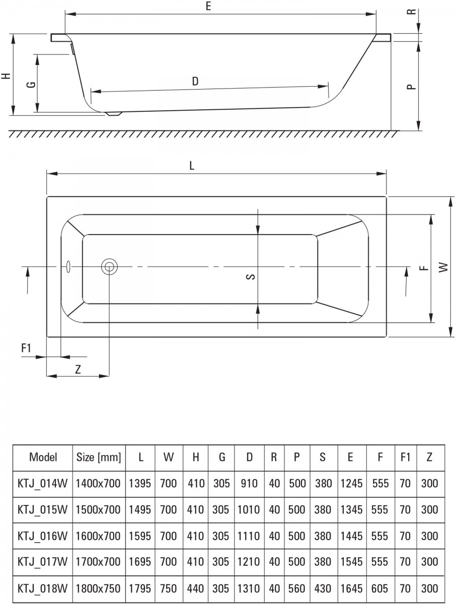 Ванна акриловая Deante Prizma KTJ_016W 160x70, размеры: 160x70 cм, материал: акрил, монтаж: врезной, объем: 170 л, форма: прямоугольная