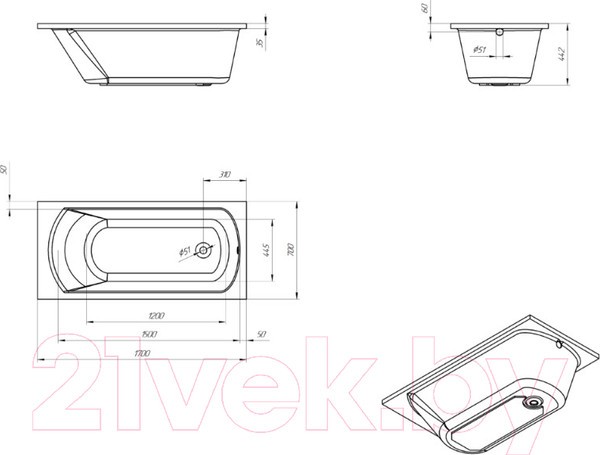 Ванна акриловая Eurolux Miamika 170x70 / E1017070032