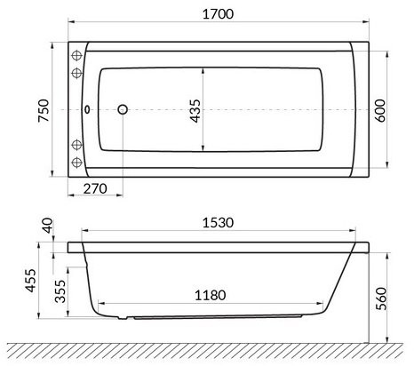 - Размер ванны (Д.;Ш.;В., см.): 170x75x41