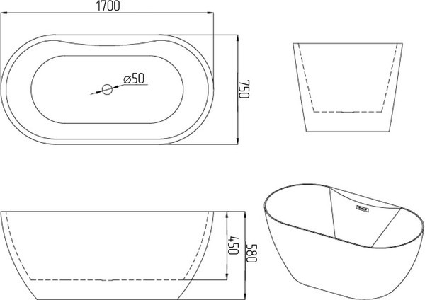 Акриловая ванна Grossman Classic GR-12502-1 170x75 (со смесителем)