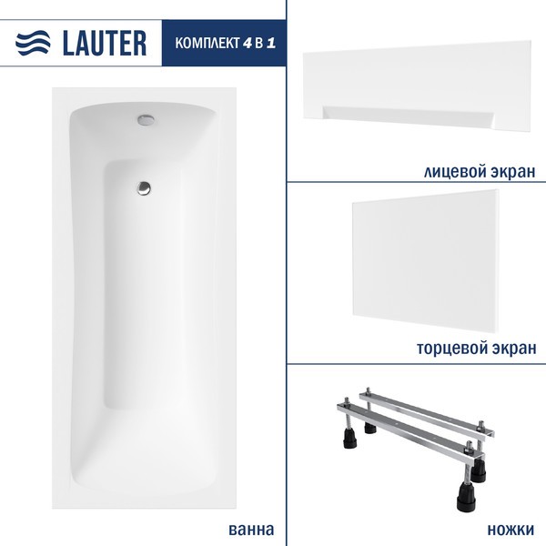 Ванна акриловая Lauter Bianca 160x70 / 21207160 (с ножками, лицевым и торцевым экраном)