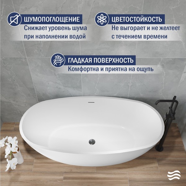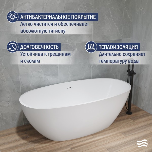 Акрил обладает превосходными полировочными свойствами, что позволяет поддерживать идеальный блеск поверхности ванны на протяжении всего срока ее службы. Поверхность ванны покрыта антибактериальным слоем, который облегчает уход и сохраняет первоначальный белый цвет.