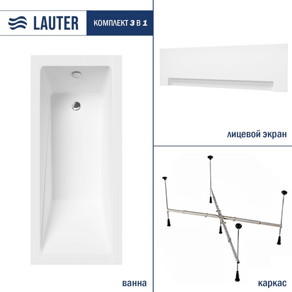 Прямоугольная акриловая ванна Lauter Estelle 180 / 21206080 (с каркасом, лицевым экраном)