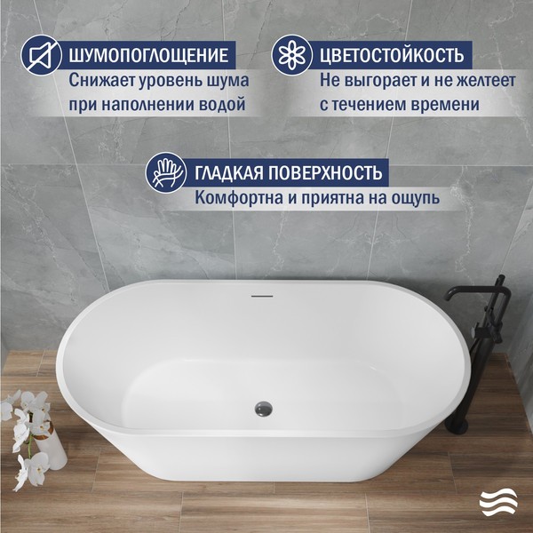 Акрил обладает превосходными полировочными свойствами, что позволяет поддерживать идеальный блеск поверхности ванны на протяжении всего срока ее службы. Поверхность ванны покрыта антибактериальным слоем, который облегчает уход и сохраняет первоначальный белый цвет.