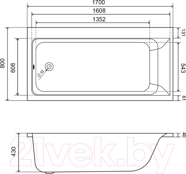 Акриловая ванна Lauter Seraphina 170x80 / 2112170L