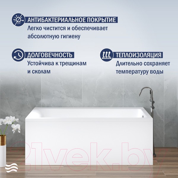 Ванна акриловая Seraphina 170x80 / 2112170R — стильная и функциональная модель для установки в ванной комнате. С прямоугольной формой и правой модификацией, она подходит для размещения в стандартных помещениях. Акриловая ванна отличается высокой прочностью и устойчивостью к механическим повреждениям, а антибактериальное покрытие способствует поддержанию гигиеничности и чистоты. Благодаря антиаллергенным свойствам, модель станет хорошим выбором для людей с чувствительной кожей или склонностью к аллергическим реакциям. Ванна акриловая отличается не только долговечностью, но и современным дизайном, который органично впишется в интерьер ванной комнаты.