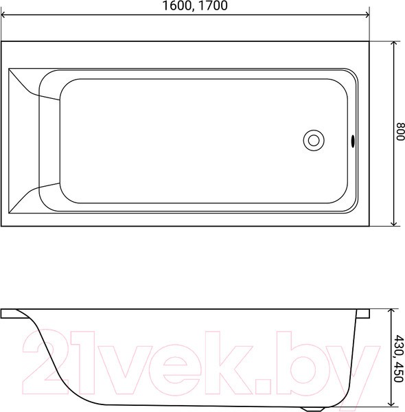 - Боковое расположение сливного отверстия позволяет легко подключить ванну к системе водоснабжения.