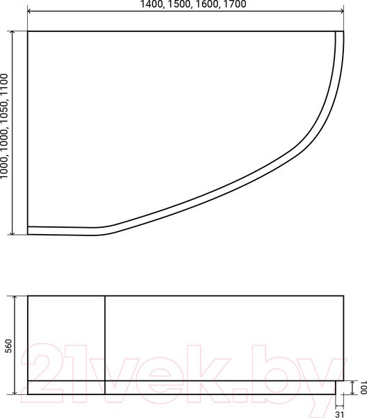 Акриловая ванна Lauter Valencia 150x100 / 2102150L