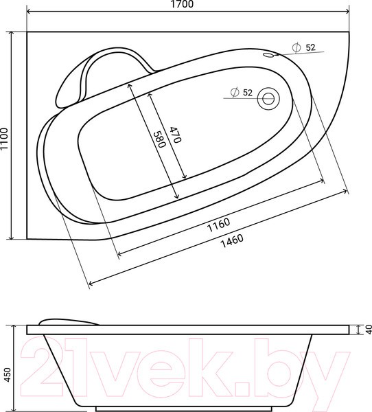 Акриловая ванна Lauter Valencia 170x110 / 2102170L