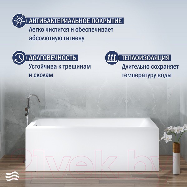 Ванна с антибактериальным покрытием поддерживает здоровье и способствует поддержанию чистоты в ванной комнате.