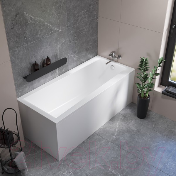 - Тонкий борт и прямоугольная форма делают ванну стильной и удобной для монтажа.