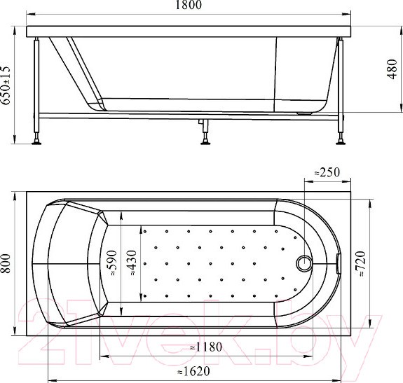 Прямоугольная акриловая ванна Radomir Николь 180x80 / 2-78-0-0-1-210Р (фронтальный, с каркасом)