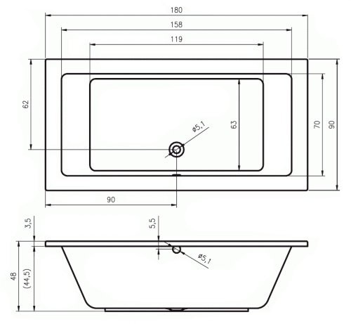 - Размер ванны (Д.;Ш.;В., см.): 180x90x48