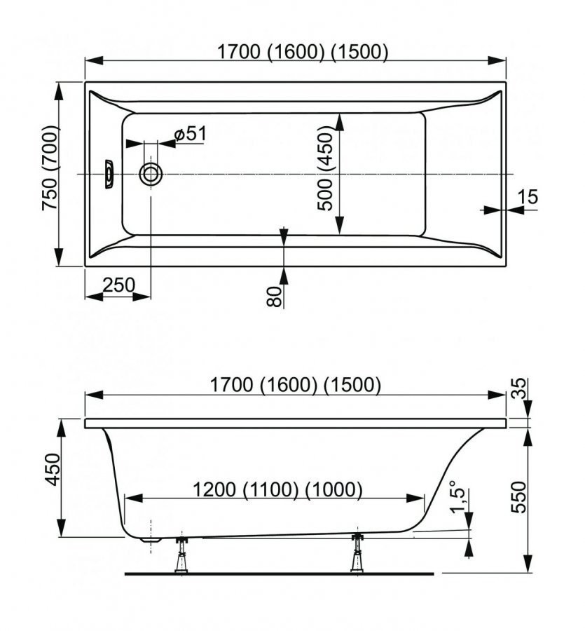 - Размер ванны (Д.;Ш.;В., см.): 150x70x55 см