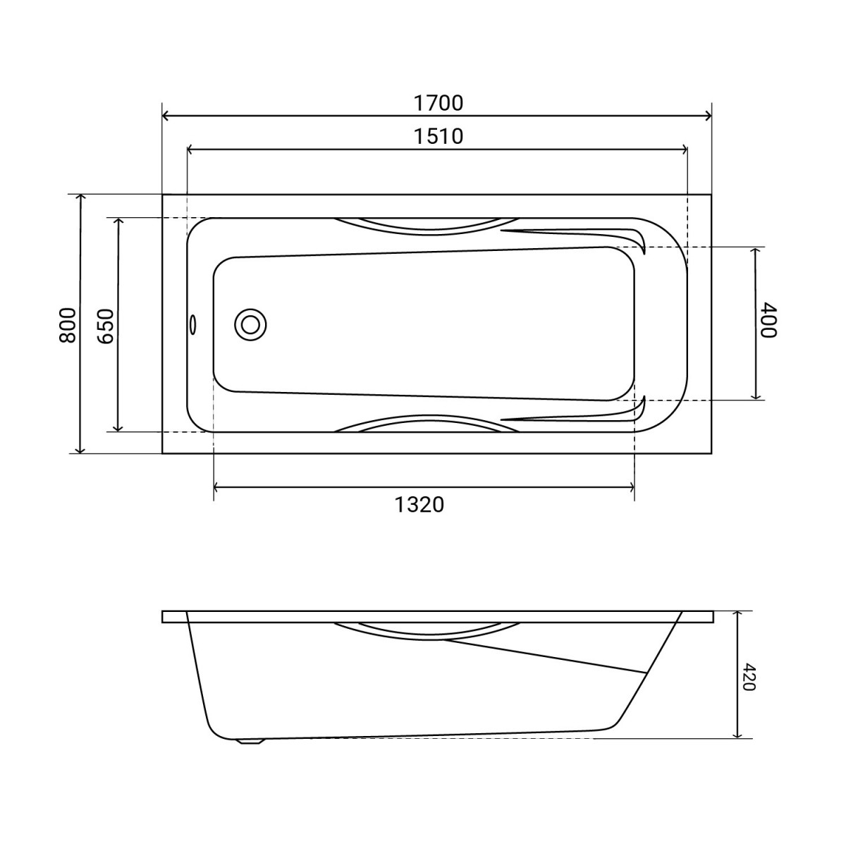 Габаритные размеры 170×80 см с глубиной 42 см подходят для большинства ванных комнат. Универсальная модификация учитывает особенности типовых планировок.