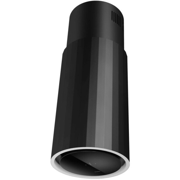 Интерьерная вытяжка в стиле «современная классика». Корпус вытяжки напоминает античную колонну с вертикальным профильным сечением. Дизайн вытяжки эффектно выделяется рельефными полосами вдоль цилиндрического корпуса и запоминающейся стеклянной панелью управления, выполненной в соответствии со всеми тенденциями рынка бытовой техники. Необычная вытяжка благодаря стильному исполнению и техническим характеристикам идеально впишется в интерьер любой современной кухни. Если вы считали, что вытяжка не должна выделяться в интерьере, то после знакомства с данной моделью вы наверняка поменяете свое мнение. Это вытяжка цилиндрической формы, в которой стиль и элегантность сочетаются с высокой производительностью.Можно устанавливать на островной кухне. Корпус цилиндрической формы, выполненный из металла с термостойким покрытием, крепится на потолок над поверхностью плиты. В нижней части вытяжки находится алюминиевый многослойный жироулавливающий фильтр. Он легко вынимается и полностью разбирается, что сильно упрощает чистку.Управление вытяжкой осуществляется с помощью жеста руки или пульта дистанционного управления. Это делает использование вытяжки максимально удобным и простым.Вытяжка со стеклянной панелью управления станет истинным украшением вашей кухни и облегчит уход. Механическое управление с подсветкой позволит выбрать один из 4-х режимов работы вентилятора и включить LED освещение. Тихая работа и высокая эффективность вытяжки обеспечиваются особой конструкцией. Телескопический корпус вытяжки позволяет легко изменить высоту вытяжки при монтаже. Рекомендуемая площадь (высота 2.6 м) до 30 м².Работа вытяжки контролируется двумя способами: при помощи пульта или жестами. Инновационная система управления жестом позволяет полностью контролировать устройство движением руки. Всего 3 жеста достаточно для того, чтобы вытяжка полностью выполняла свои функции. Можно выбрать один из 4-х режимов работы и включить LED освещение. Устройство оснащено цветной светодиодной подсветкой, информирующей о текущей скорости вращения вентилятора. Скорость 1 (низкая): подсветка зеленого цвета, скорость 2 (средняя): подсветка синего цвета, скорость 3 (высокая): подсветка розового цвета, скорость 4 (повышенная): подсветка красного цвета.