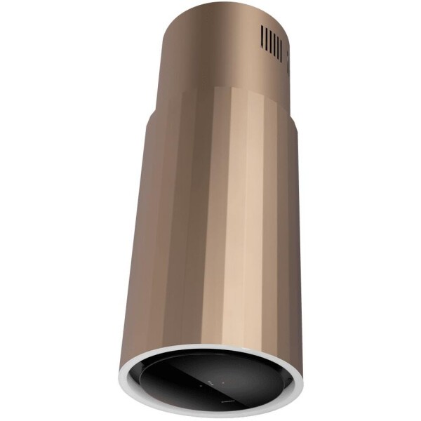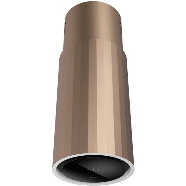 Интерьерная вытяжка в стиле «современная классика». Корпус вытяжки напоминает античную колонну с вертикальным профильным сечением. Дизайн вытяжки эффектно выделяется рельефными полосами вдоль цилиндрического корпуса и запоминающейся стеклянной панелью управления, выполненной в соответствии со всеми тенденциями рынка бытовой техники. Необычная вытяжка благодаря стильному исполнению и техническим характеристикам идеально впишется в интерьер любой современной кухни. Если вы считали, что вытяжка не должна выделяться в интерьере, то после знакомства с данной моделью вы наверняка поменяете свое мнение. Это вытяжка цилиндрической формы, в которой стиль и элегантность сочетаются с высокой производительностью.Можно устанавливать на островной кухне. Корпус цилиндрической формы, выполненный из металла с термостойким покрытием, крепится на потолок над поверхностью плиты. В нижней части вытяжки находится алюминиевый многослойный жироулавливающий фильтр. Он легко вынимается и полностью разбирается, что сильно упрощает чистку.Управление вытяжкой осуществляется с помощью жеста руки или пульта дистанционного управления. Это делает использование вытяжки максимально удобным и простым.Вытяжка со стеклянной панелью управления станет истинным украшением вашей кухни и облегчит уход. Механическое управление с подсветкой позволит выбрать один из 4-х режимов работы вентилятора и включить LED освещение. Тихая работа и высокая эффективность вытяжки обеспечиваются особой конструкцией. Телескопический корпус вытяжки позволяет легко изменить высоту вытяжки при монтаже. Рекомендуемая площадь (высота 2.6 м) до 30 м².Работа вытяжки контролируется двумя способами: при помощи пульта или жестами. Инновационная система управления жестом позволяет полностью контролировать устройство движением руки. Всего 3 жеста достаточно для того, чтобы вытяжка полностью выполняла свои функции. Можно выбрать один из 4-х режимов работы и включить LED освещение. Устройство оснащено цветной светодиодной подсветкой, информирующей о текущей скорости вращения вентилятора. Скорость 1 (низкая): подсветка зеленого цвета, скорость 2 (средняя): подсветка синего цвета, скорость 3 (высокая): подсветка розового цвета, скорость 4 (повышенная): подсветка красного цвета.