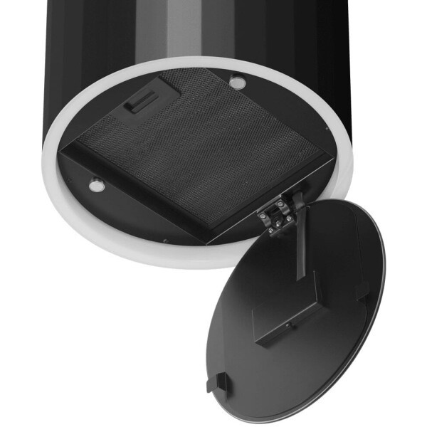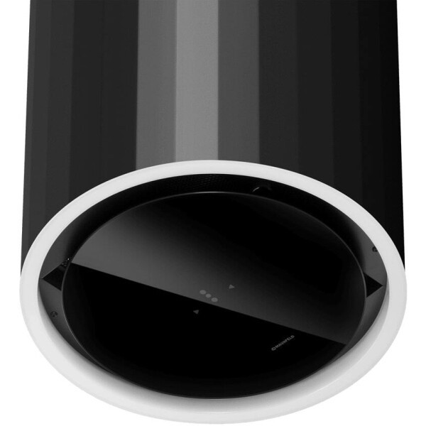Дизайн вытяжки эффектно выделяется рельефными полосами вдоль цилиндрического корпуса и запоминающейся стеклянной панелью, выполненной в соответствии со всеми тенденциями рынка бытовой техники. Необычная вытяжка благодаря стильному исполнению и техническим характеристикам идеально впишется в интерьер любой современной кухни. Инновационная система управления жестом позволяет полностью контролировать устройство движением руки. Всего 3 жеста достаточно для того, чтобы вытяжка полностью выполняла свои функции. Можно выбрать один из 4-х режимов работы и включить LED освещение.