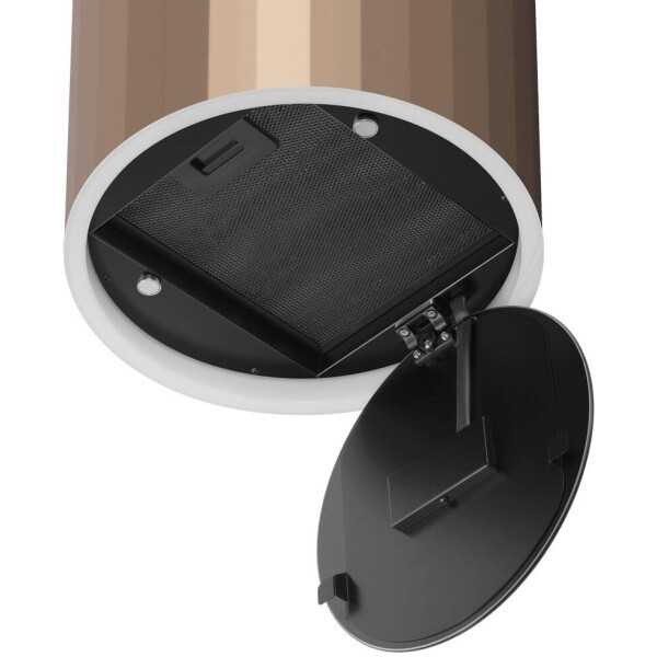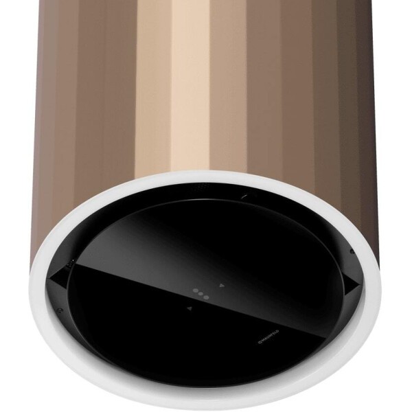 Дизайн вытяжки эффектно выделяется рельефными полосами вдоль цилиндрического корпуса и запоминающейся стеклянной панелью, выполненной в соответствии со всеми тенденциями рынка бытовой техники. Необычная вытяжка благодаря стильному исполнению и техническим характеристикам идеально впишется в интерьер любой современной кухни. Инновационная система управления жестом позволяет полностью контролировать устройство движением руки. Всего 3 жеста достаточно для того, чтобы вытяжка полностью выполняла свои функции. Можно выбрать один из 4-х режимов работы и включить LED освещение.