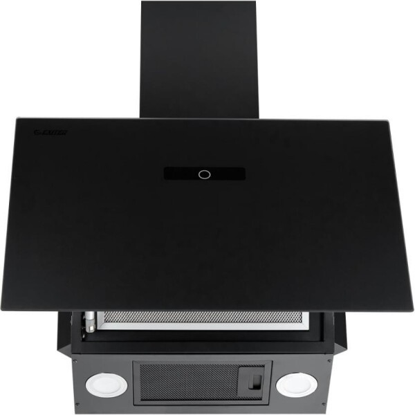 - Лицевая панель выполнена из черного матового стекла, вытяжка отлично вписывается практически в любой дизайн кухни.