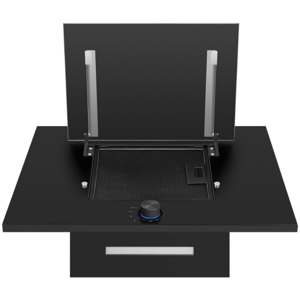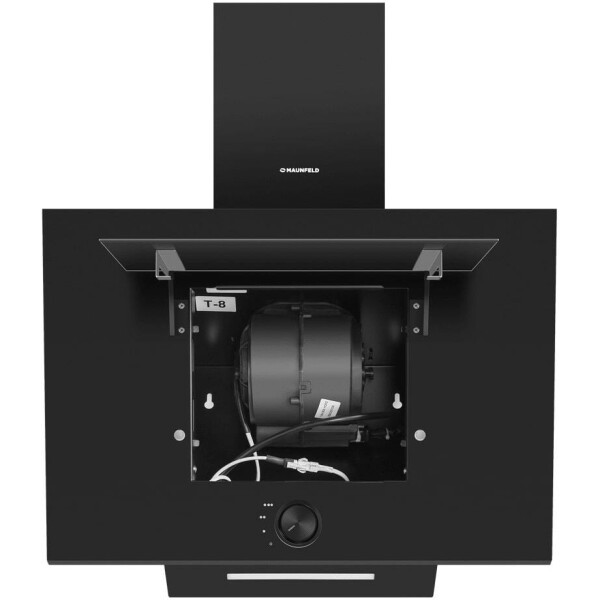 Корпус выполнен из нержавеющей стали. Материал фасада выполнен из металла, крышка из глянцевого закаленного стекла скрывает многослойный алюминиевый жироулавливающий фильтр, который легко снимается и полностью разбирается. Загрязненный воздух втягивается по всему периметру откидной панели.