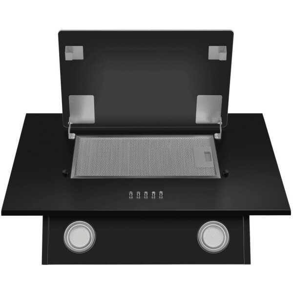 Современная вытяжка наклонного типа с и интересным, дизайнерским решением, скрывающим жироулавливающий фильтр за глянцевым стеклом. Вытяжка выполнена из высококачественной стали и закаленного стекла. Вытяжка оснащена удобным кнопочным управлением 3-мя скоростями.Модель оснащена ярким Led освещением (светодиодные лампы), света которого достаточно для комфортного приготовления пищи на плите.Модельный ряд состоит из 2 цветов: черный, белый.Прибор может работать в режимах отвода и рециркуляции (угольные фильтры приобретаются отдельно).