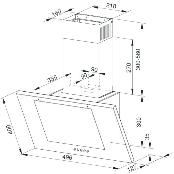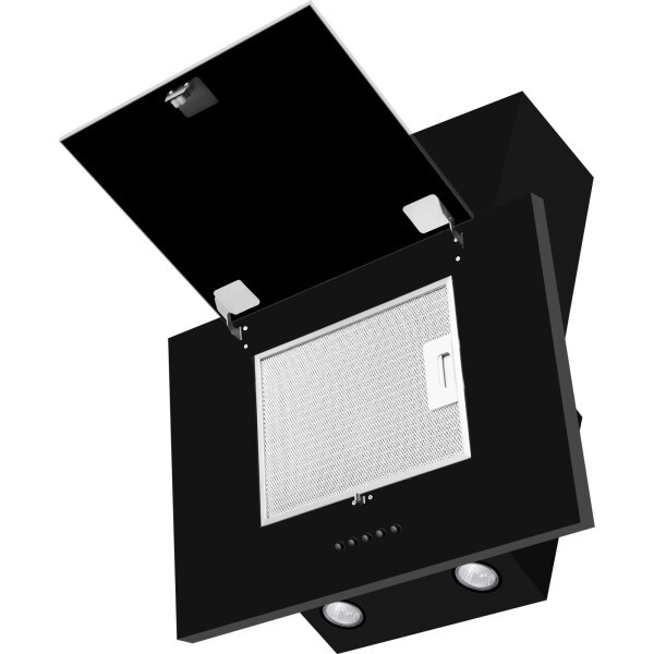 Изящная, элегантная, и при этом мощная наклонная вытяжка сочетает в своём дизайне металл и стекло, что делает её более универсальной при использовании в интерьере кухни.