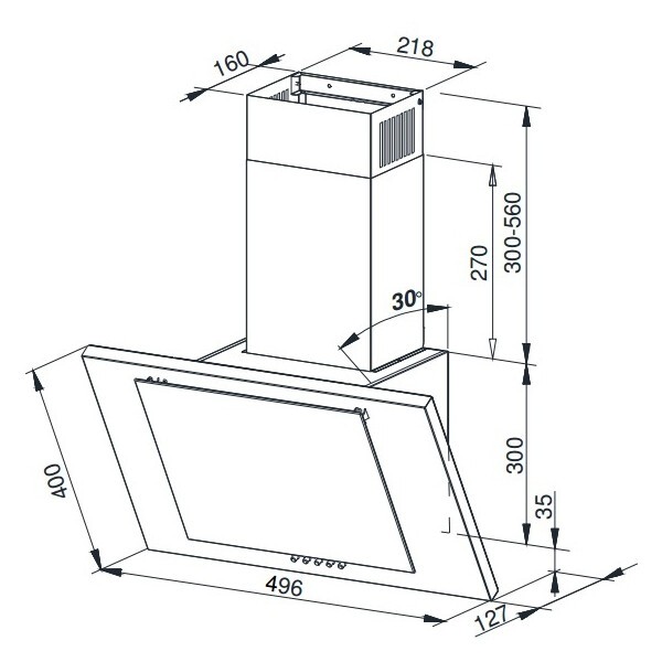 Изящная, элегантная, и при этом мощная наклонная вытяжка сочетает в своём дизайне металл и стекло, что делает её более универсальной при использовании в интерьере кухни.
