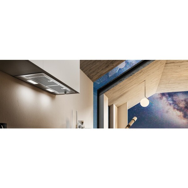Полностью встраиваемая кухонная вытяжка ERA S, монтируется в стандартные верхние шкафы кухни, не имеет выступающих вперед или подвижных элементов, что позволяет сделать наличие вытяжки максимально незаметным. Может работать как в режиме отвода, так и в режиме рециркуляции воздуха.