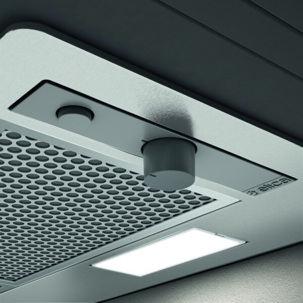 Полностью встраиваемая кухонная вытяжка Elica ERA S, монтируется в стандартные верхние шкафы кухни, не имеет выступающих вперед или подвижных элементов, что позволяет сделать наличие вытяжки максимально незаметным. Может работать как в режиме отвода, так и в режиме рециркуляции воздуха.