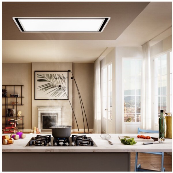 Вытяжка Skydome - это также часть проекта архитектурного освещения, разработанная для повышения комфортности кухни и создания необычной атмосферы с эмоциональным эффектом, который искусно скрывает мощную и малошумную вытяжную систему, обеспечивая максимальную производительность даже на значительном расстоянии от варочной панели.В роли верхнего освещения, 28-Ваттная, полностью светодиодная панель гарантирует равномерное и хорошо отрегулированное распределение света по рабочей поверхности и окружающей зоне, меняя яркость и теплоту света для создания идеальной атмосферы в любое время.Благодаря интеллектуальной системе дистанционного контроля (Smart Remote control), вытяжка Skydome может становиться и центром освещения кухни, позволяя также управлять дополнительными системами освещения. Для монтажа требуется минимум пространства благодаря вариантам установки (5 направлений) вентилятора и широкой гамме внешних моторов (4 варианта). Супер-тонкое исполнение подходит даже для самых сложных случаев установки, благодаря характерной компактности, до 16 см, без ущерба для внушительной мощности. Изделие можно конвертировать в фильтрующий агрегат с помощью симпатичного приспособления, гарантирующего отличную производительность по вытяжке и удалению запахов.