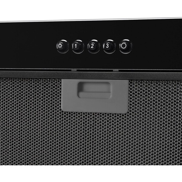 Полностью встраиваемая вытяжка, произведенная в Европе, обладающая уверенной производительностью и оснащенная интуитивно понятным кнопочным управлением, выполнена в дизайне врезного блока с панелью стильного черного цвета!
