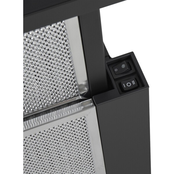УправлениеКолыбельное 2-х скоростное управление.ОсобенностиТелескопическая жировая решетка. Для работы вытяжки необходимо выдвинуть жировую решетку, данная конструктивная особенность создает широкую рабочую поверхность, что позволяет эффективно производить забор воздуха от плиты.ОсвещениеВытяжка комплектуется энергосберегающим LED освещением 2*1 Вт.МонтажВытяжка предназначена для встраивания в кухонный шкаф.ПодключениеПредназначена для работы в режиме отвода в вентиляционное отверстие, либо в режиме рециркуляции (использование сменного угольного фильтра, в комплект не входит)